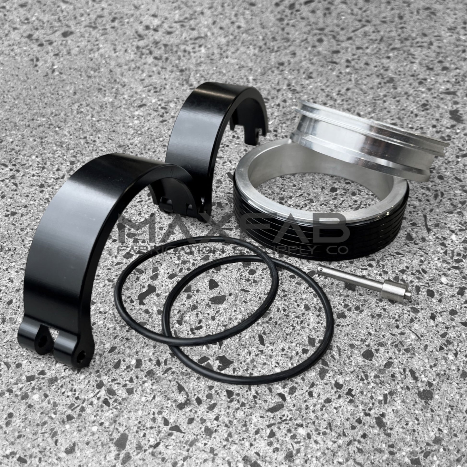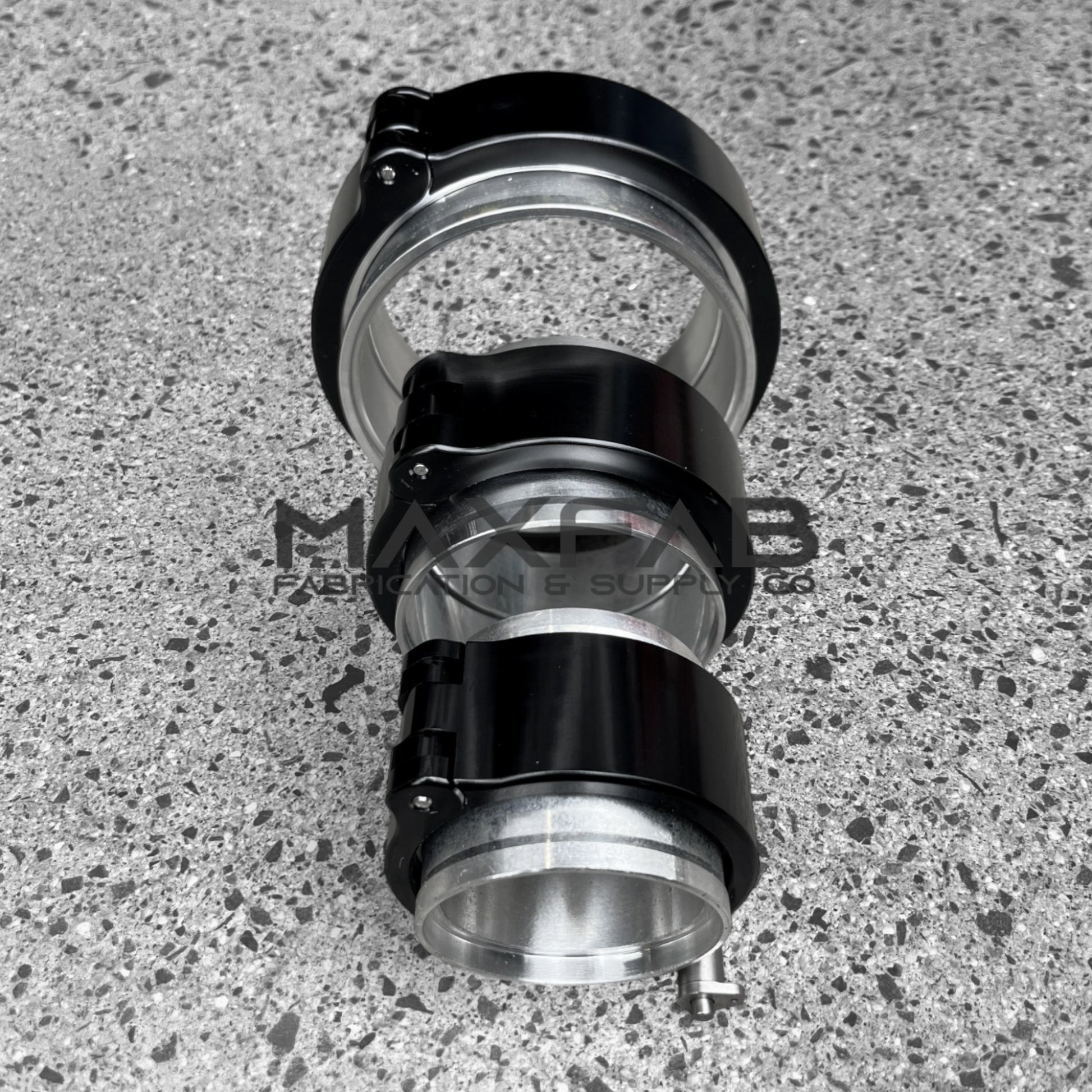 Includes a pair of aluminum flanges with o'ring groove, outer sleeve and a quick release anodized black aluminum outer clamp. Double o'ring ensures optimum sealing and allows for movement