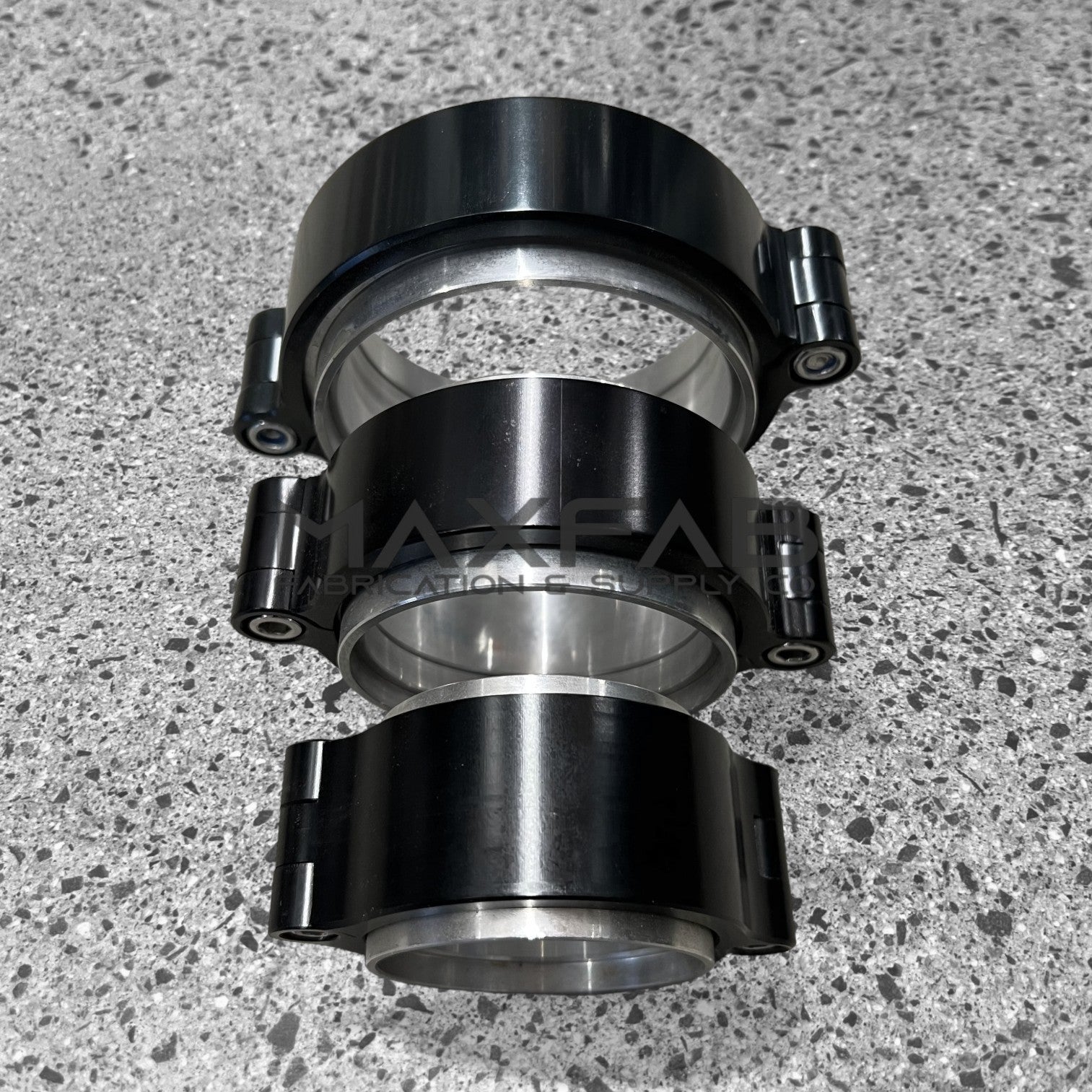 Includes a pair of aluminum flanges with o'ring groove, outer sleeve and a anodized black aluminum outer clamp. Double o'ring ensures optimum sealing and allows for movement