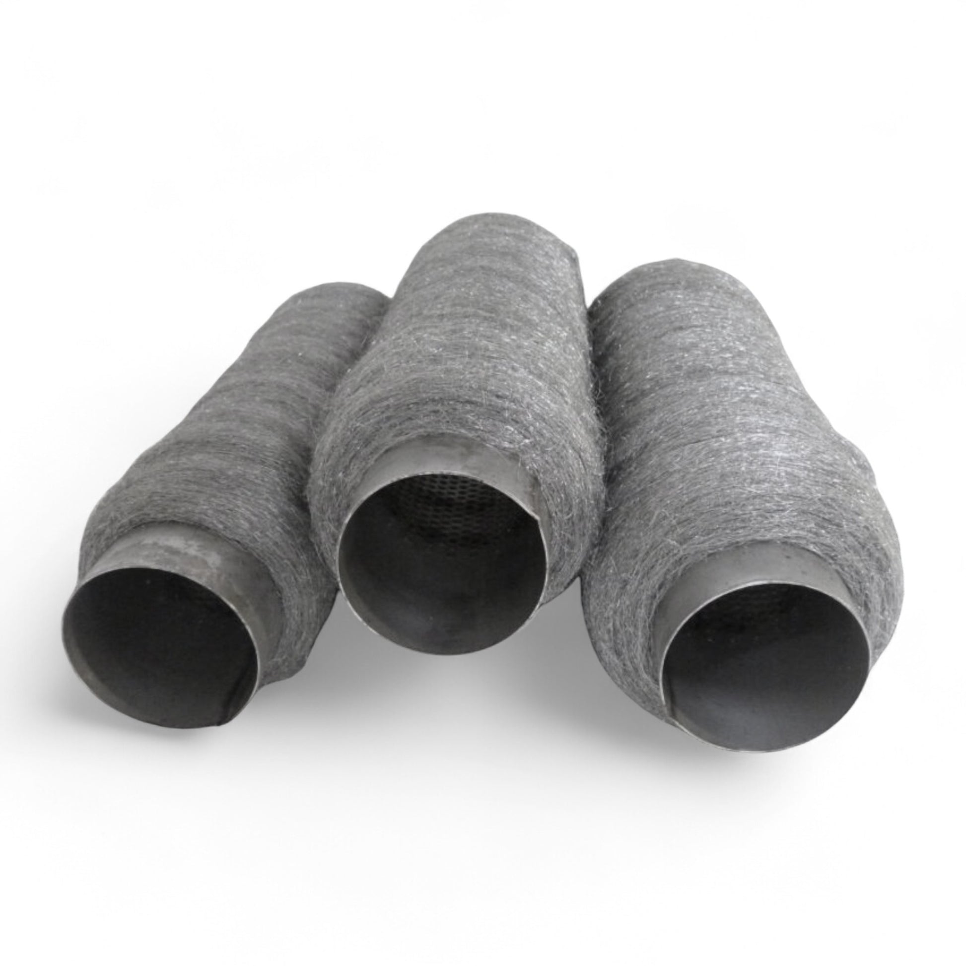 - Machine-wrapped stainless steel wool with 4 layers of protection from the hot exhaust gases.
