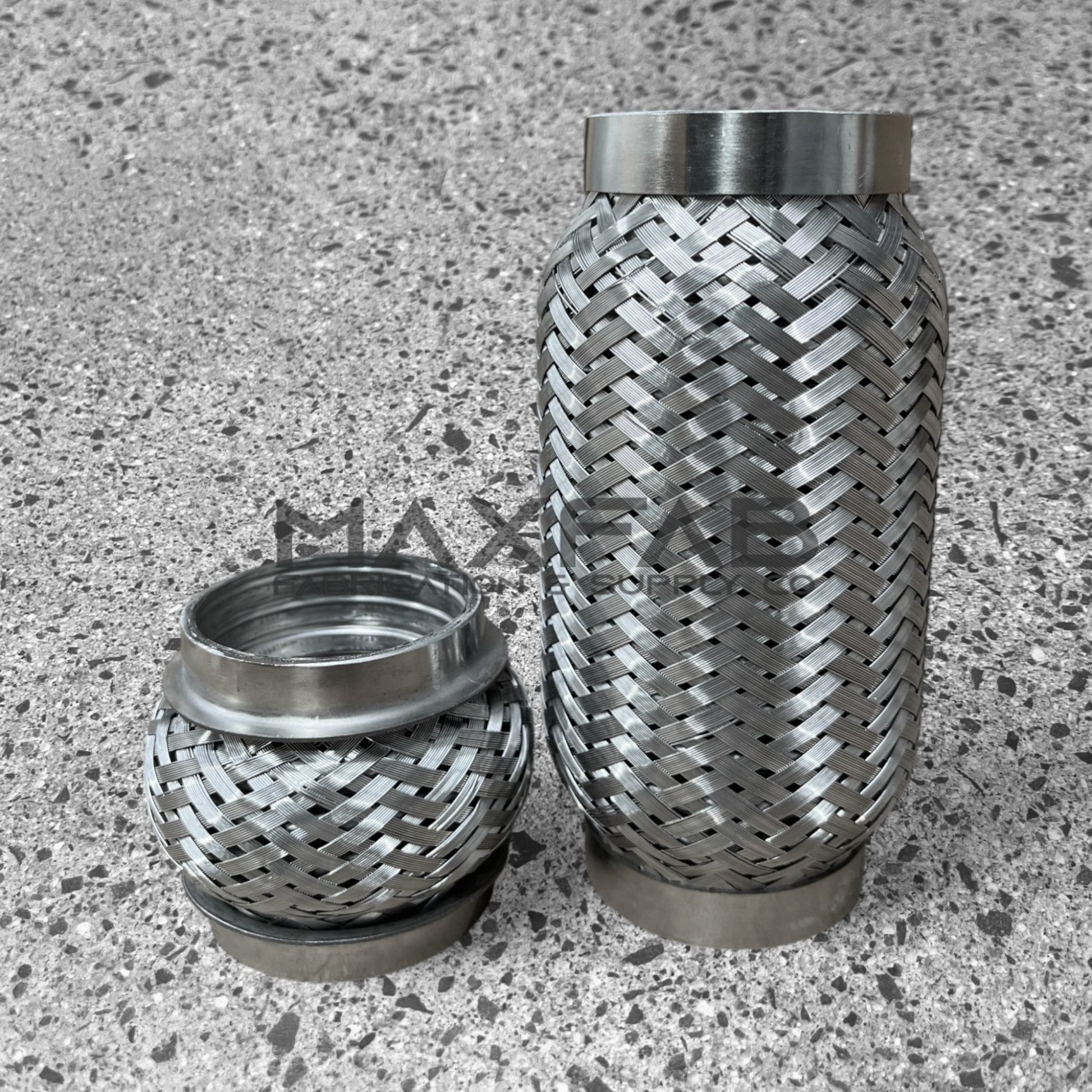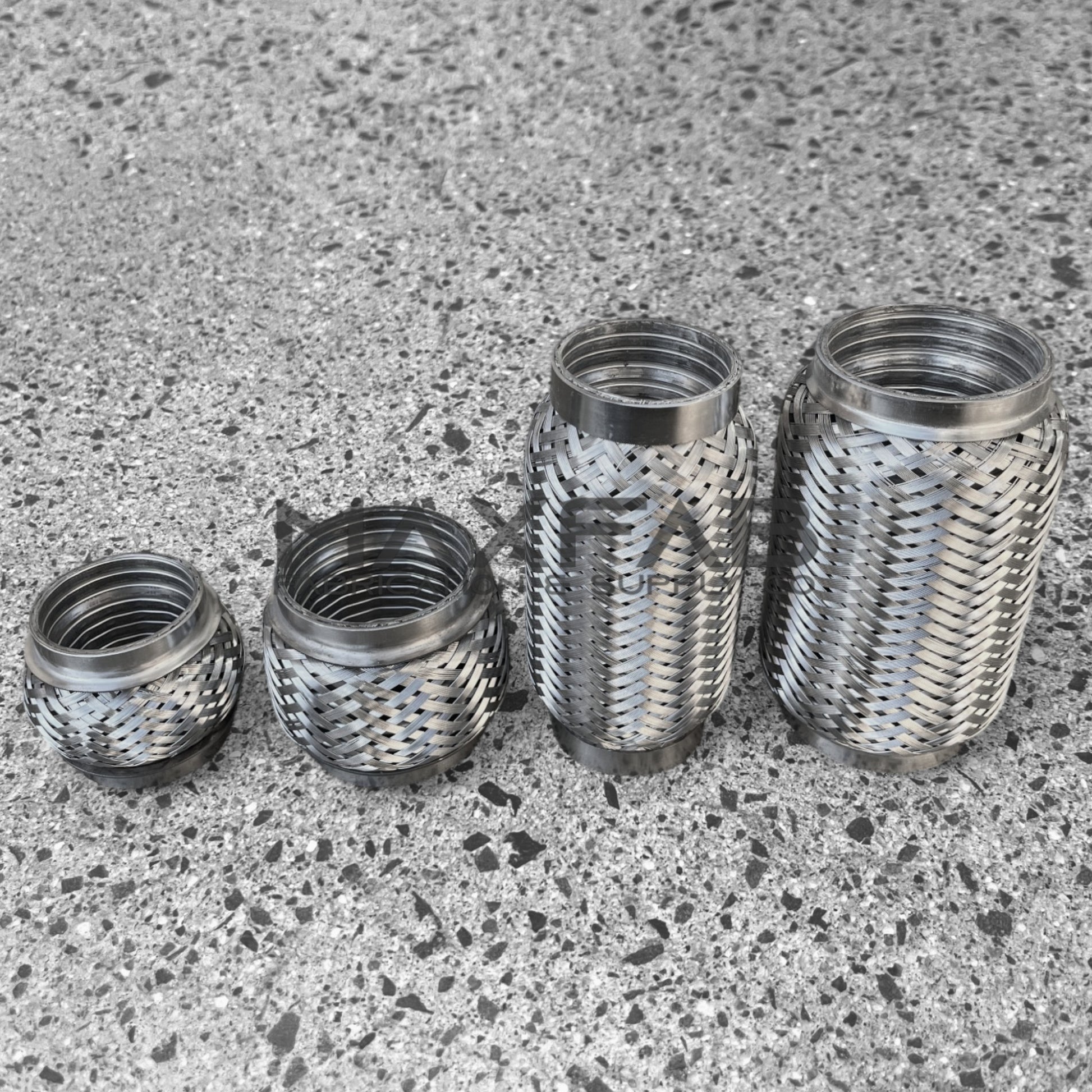Our Braided Exhaust Flexi / Exhaust Bellows are designed to make a reliable flexible connection in an exhaust system. Flexi joints are recommended in an exhaust system to help stop the weight and vibration of the exhaust transferring vibration up through your turbo or turbo manifold, this can lead to cracking of your manifold or bolts and studs vibrating loose