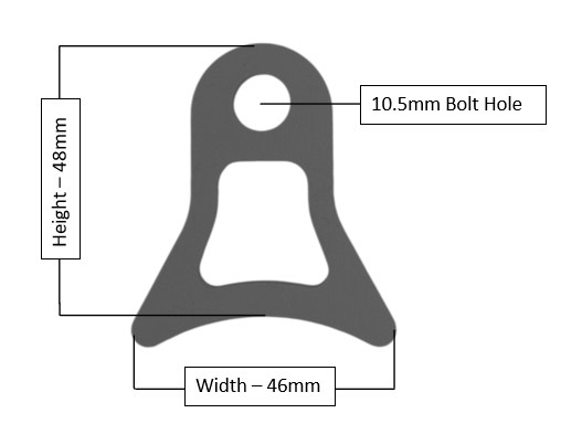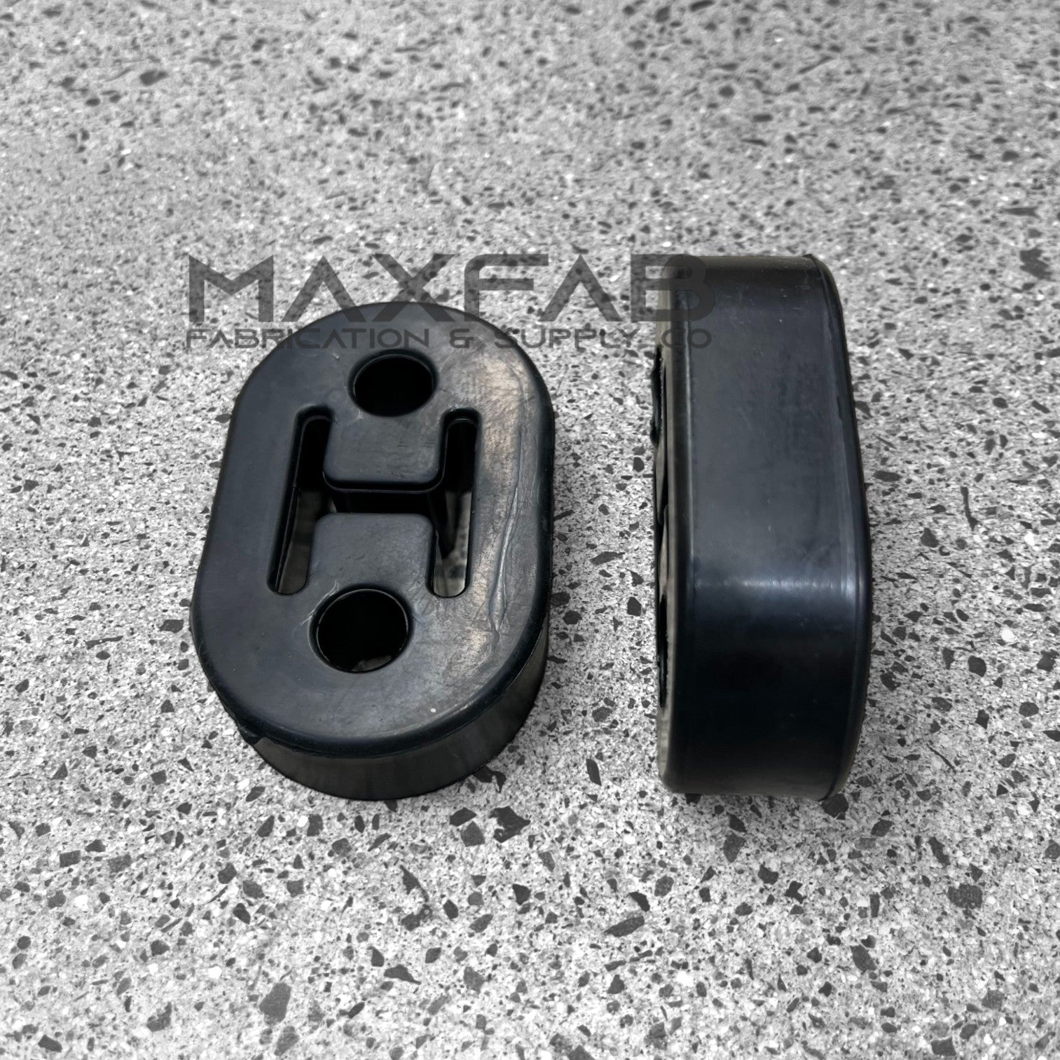- Rubber exhaust hangers - 12mm mounting holes 47w x 73h x 21 thick, and 39mm hole centers