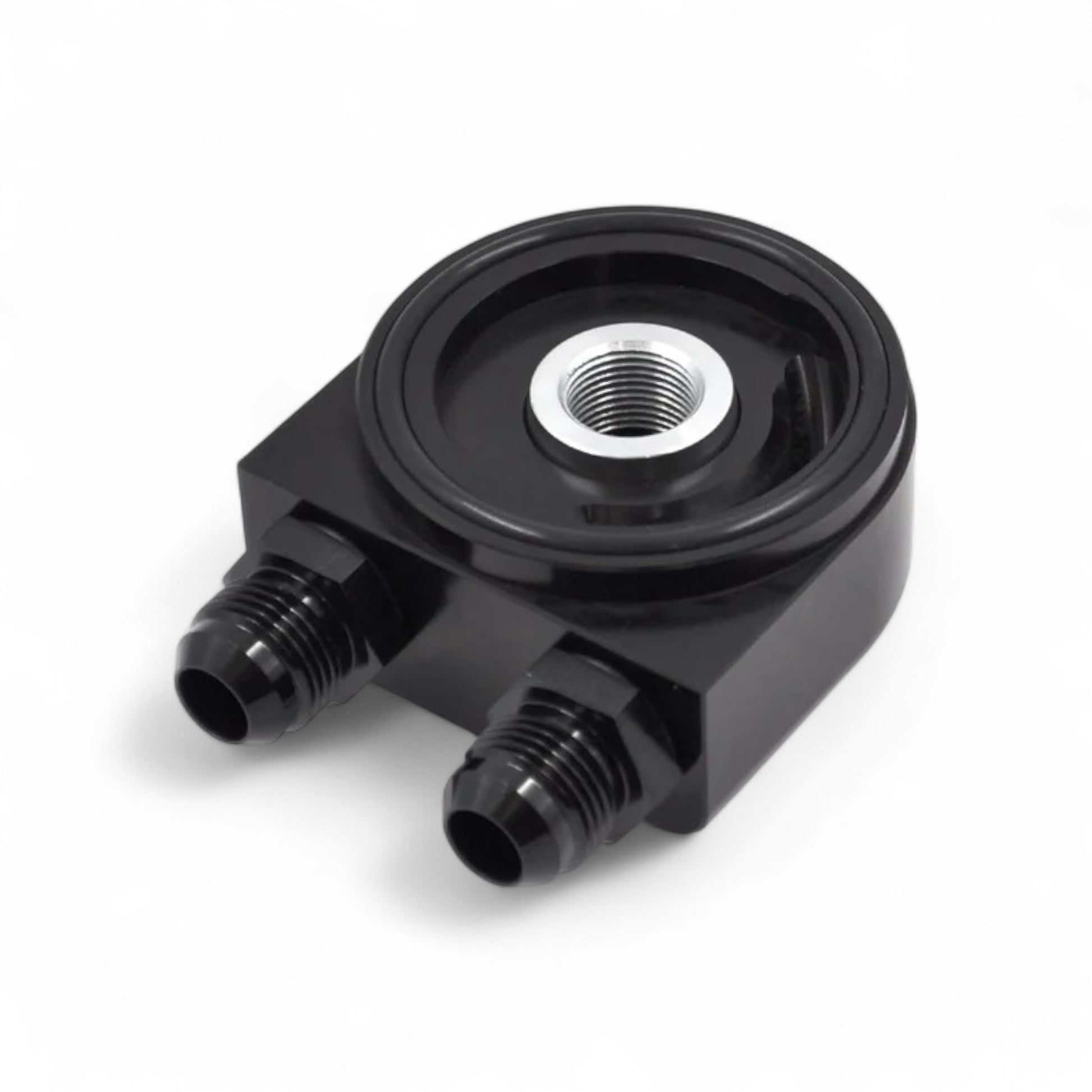 10AN sized ORB ports are provided for plumbing the engine oil to and from a filter mount