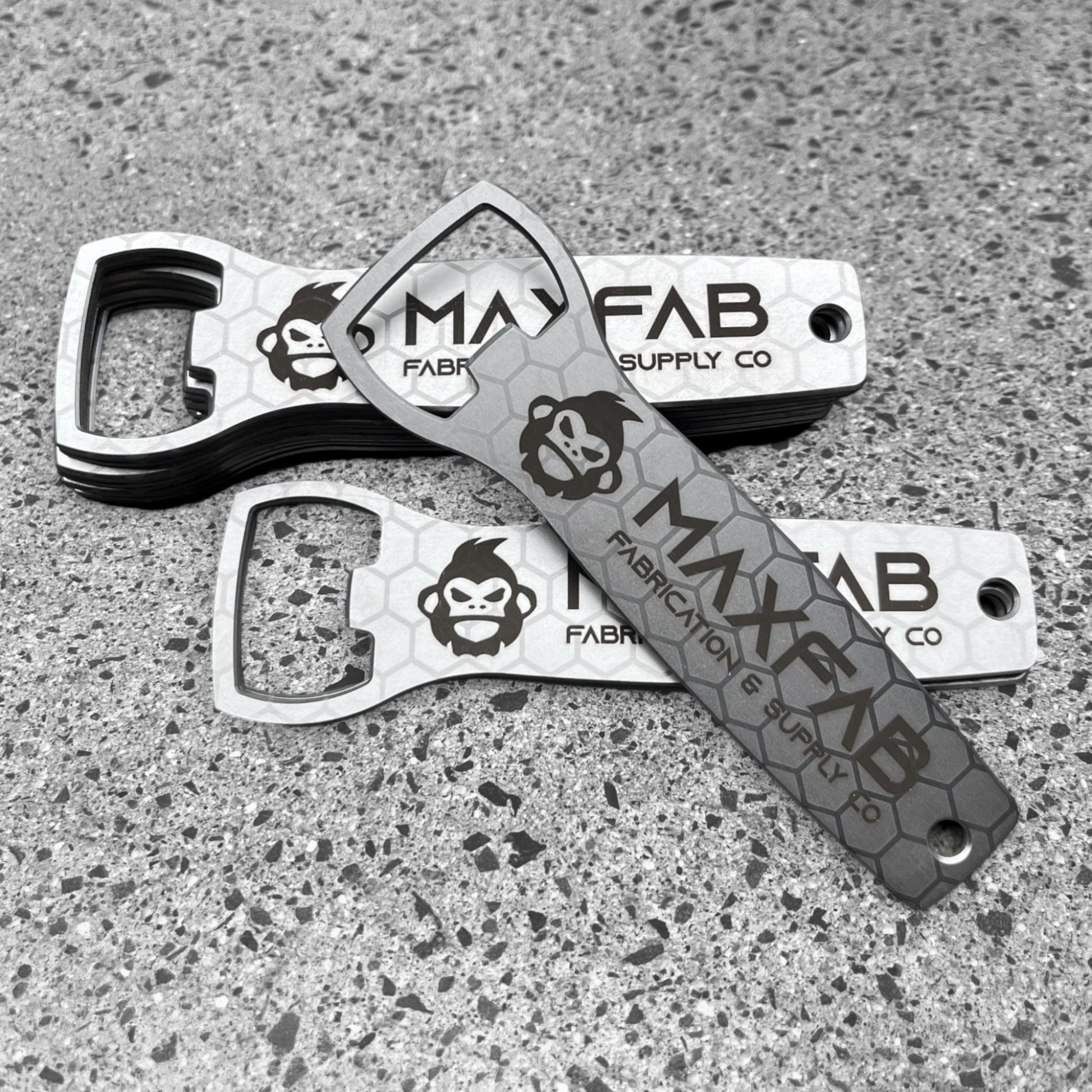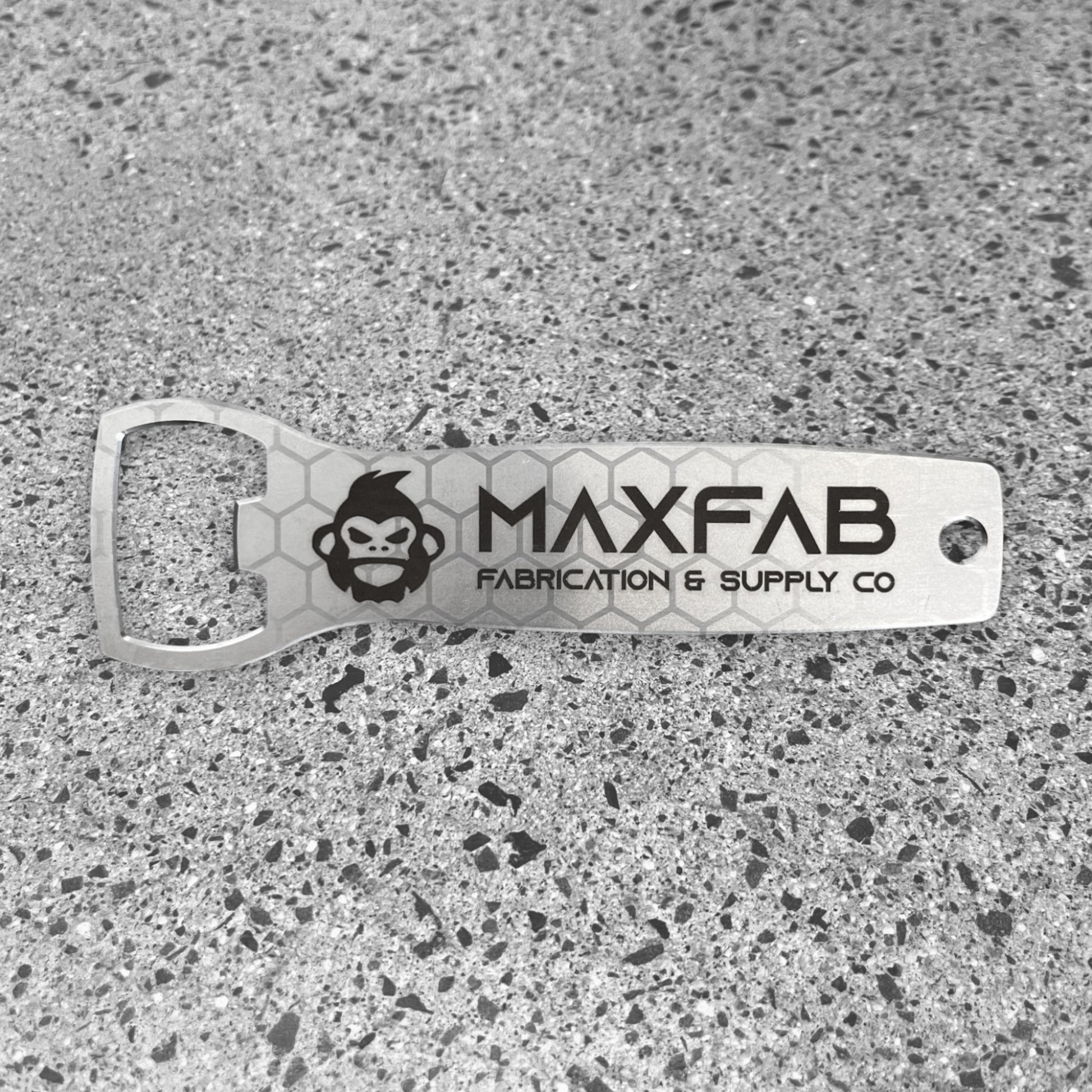 Laser engraved with MAXFAB and Monkey on a honeycomb background