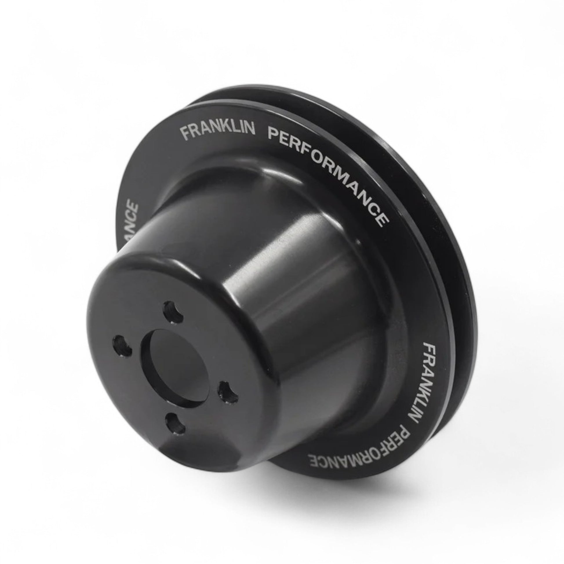 Lightweight water pump pulley made from aircraft-grade 6061-T6 aluminium for light weight, and black anodised for great looks