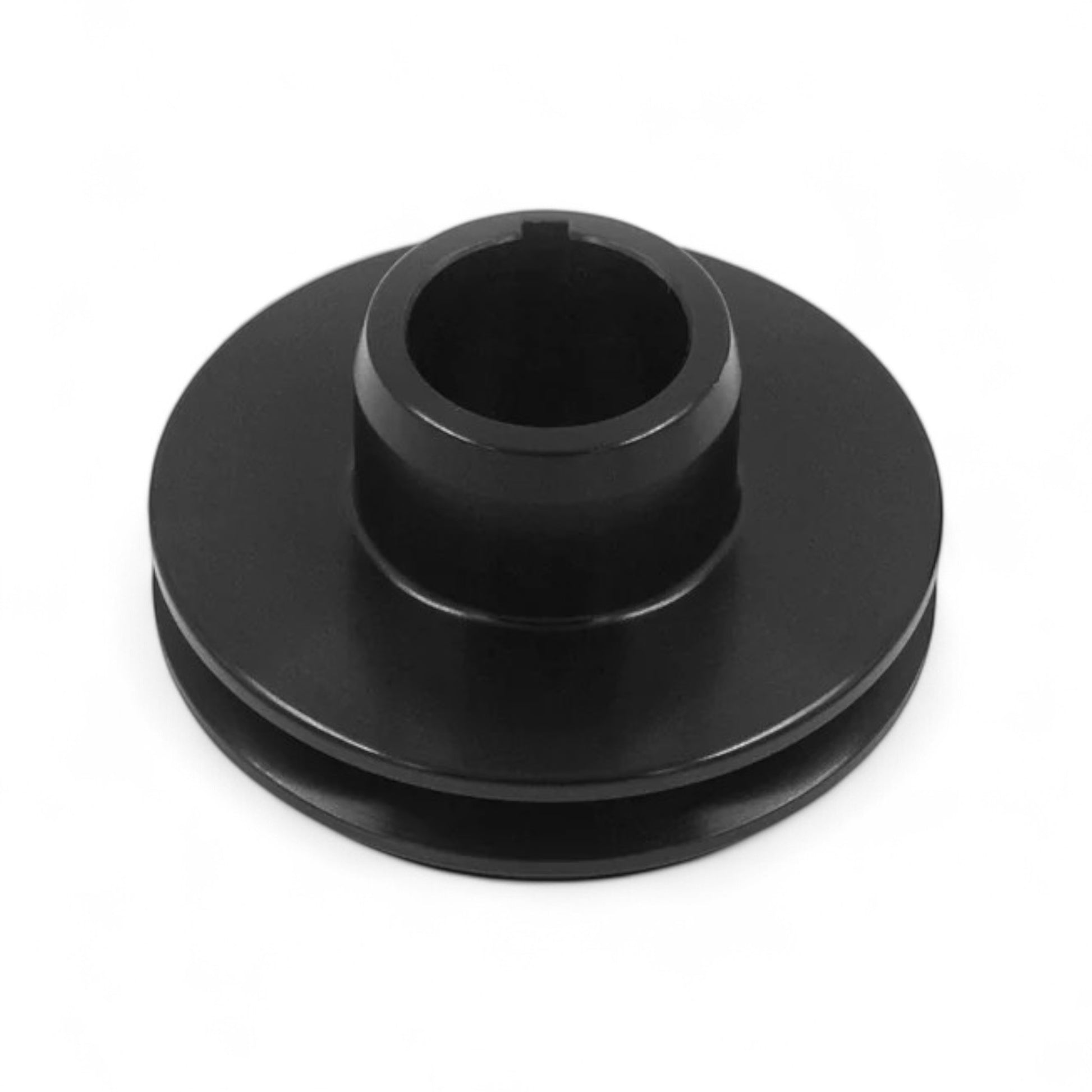 Lightweight carnk pulley made from aircraft-grade 6061-T6 aluminium for light weight, and black anodised for great looks