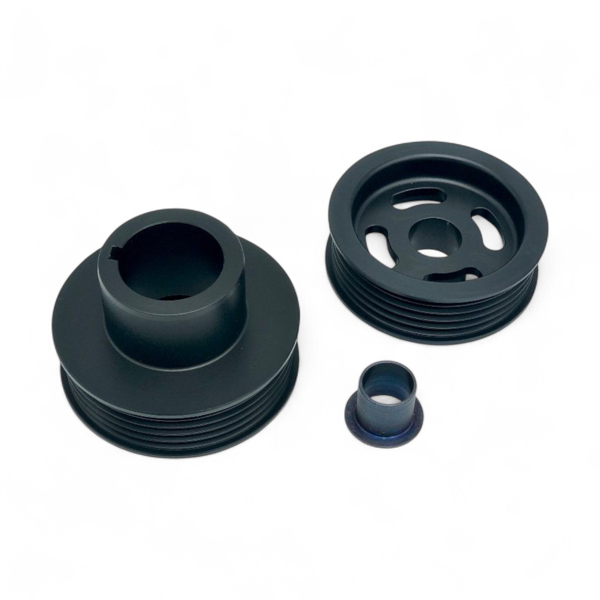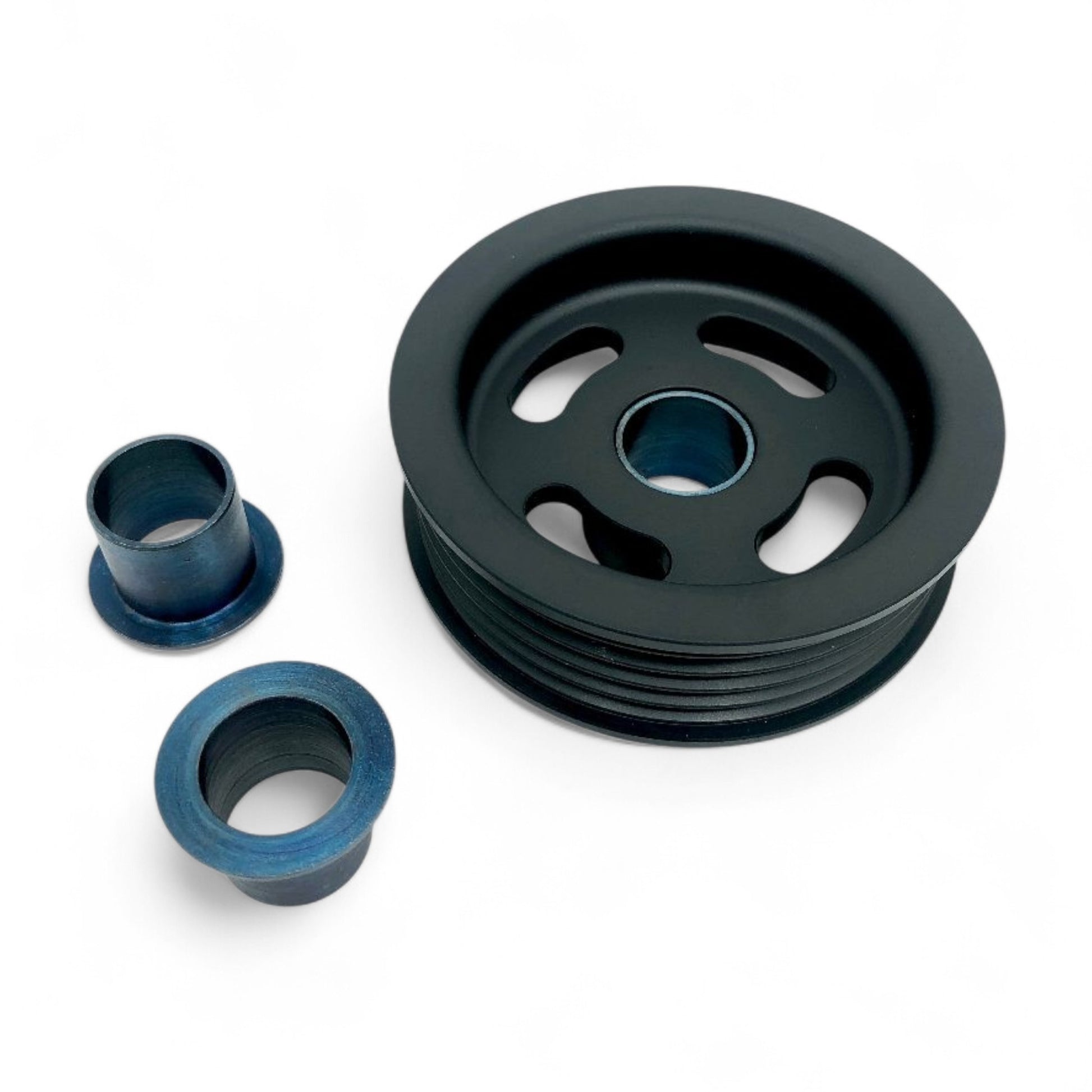 - 55 micron hard anodised crank pulley (crucial for preventing the front main seal cutting into the pulley)