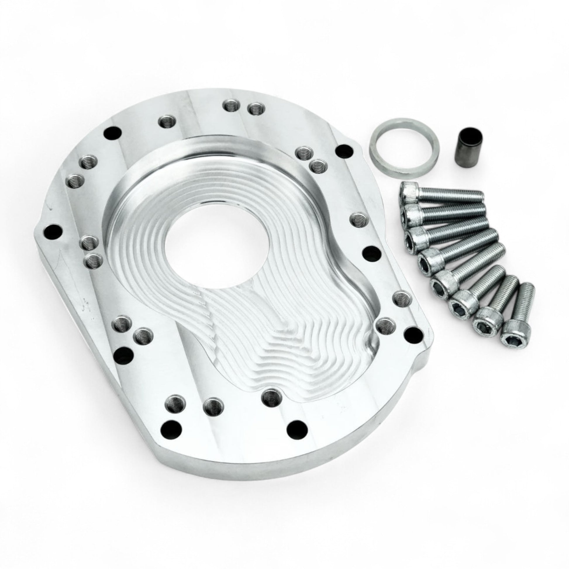 CNC machined from 6061 T6 billet alloy. Suits early bell housings (Rx3/4/5) and late model bellhousings (series 4/5)