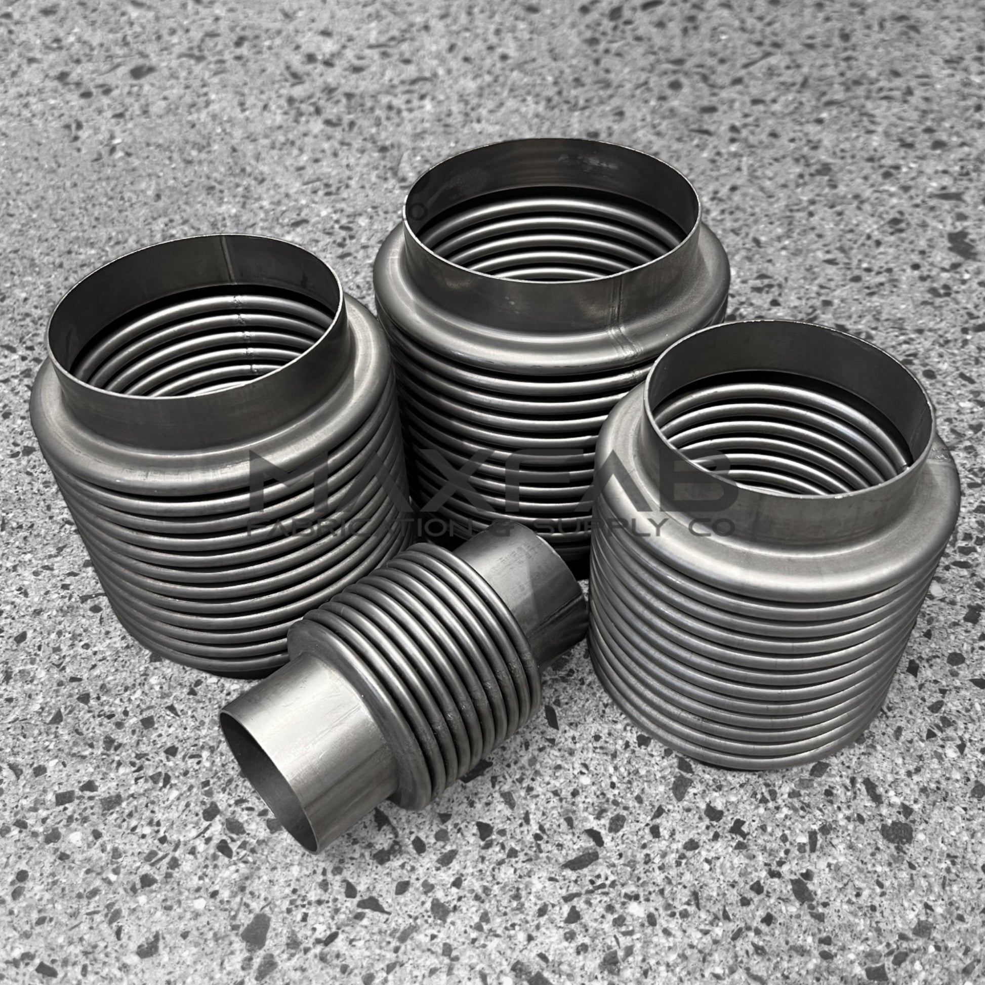 Our exhaust bellows help with alignment of v-bands or flanges by giving movement when bolting together and are specifically designed to fit in tight spaces where length is limited. When thermal expansion is creating issues of cracking pipes these will aid with this by allowing pipes to move while heating and cooling from every day use of your vehicle
