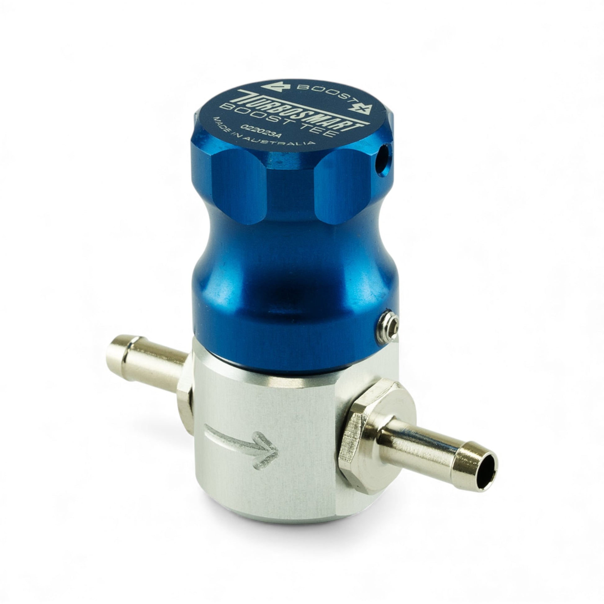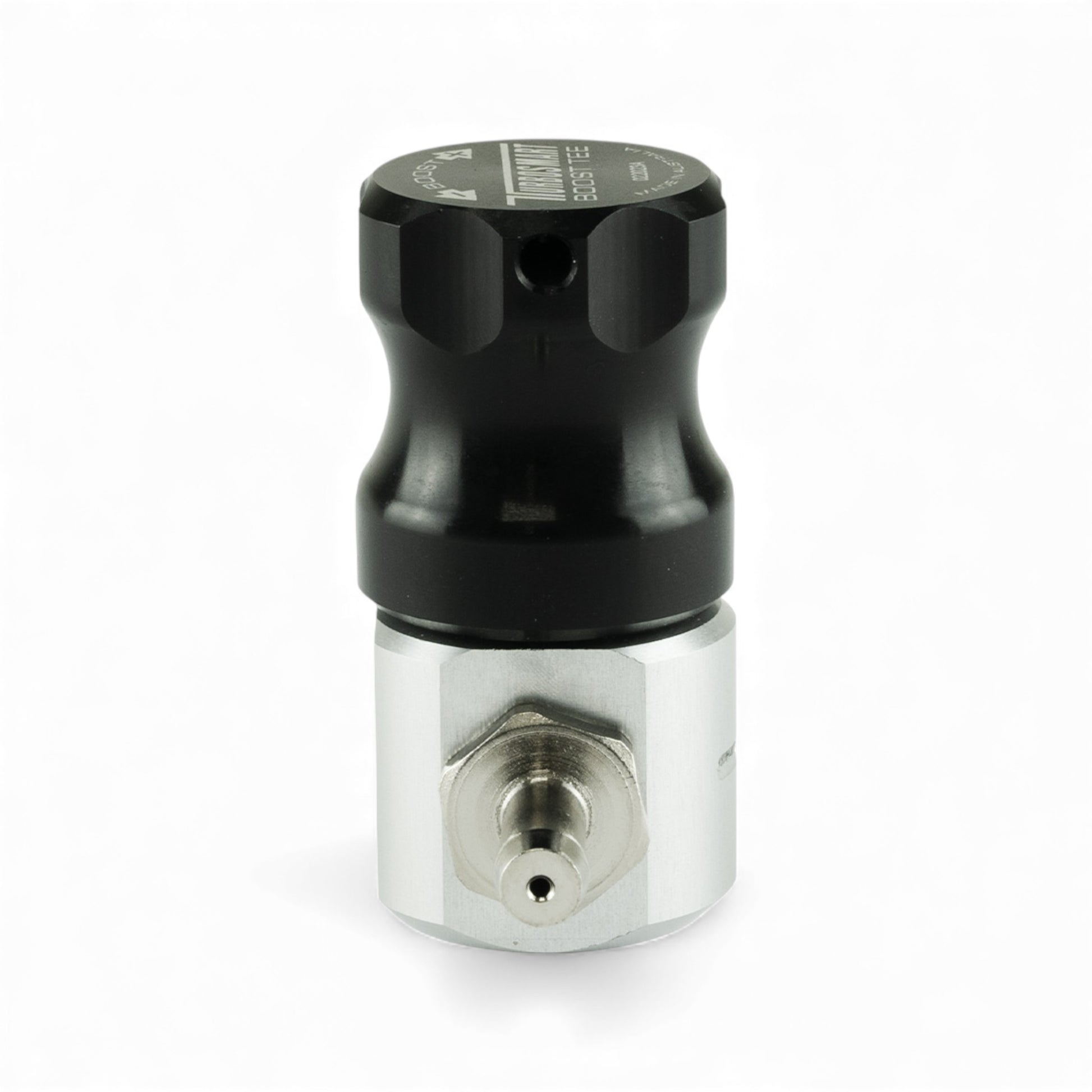 The Boost Tee is a pneumatic bleed valve that allows an increase in boost on turbocharger systems where boost-based actuators are used and are suitable for use on both internal and external wastegate systems. By manipulating the reference signal to an internal wastegate actuator or external wastegate, an increase in boost over and above the base spring pressure can be achieved. It is common to achieve 100-200% increases in boost over the base spring pressure.